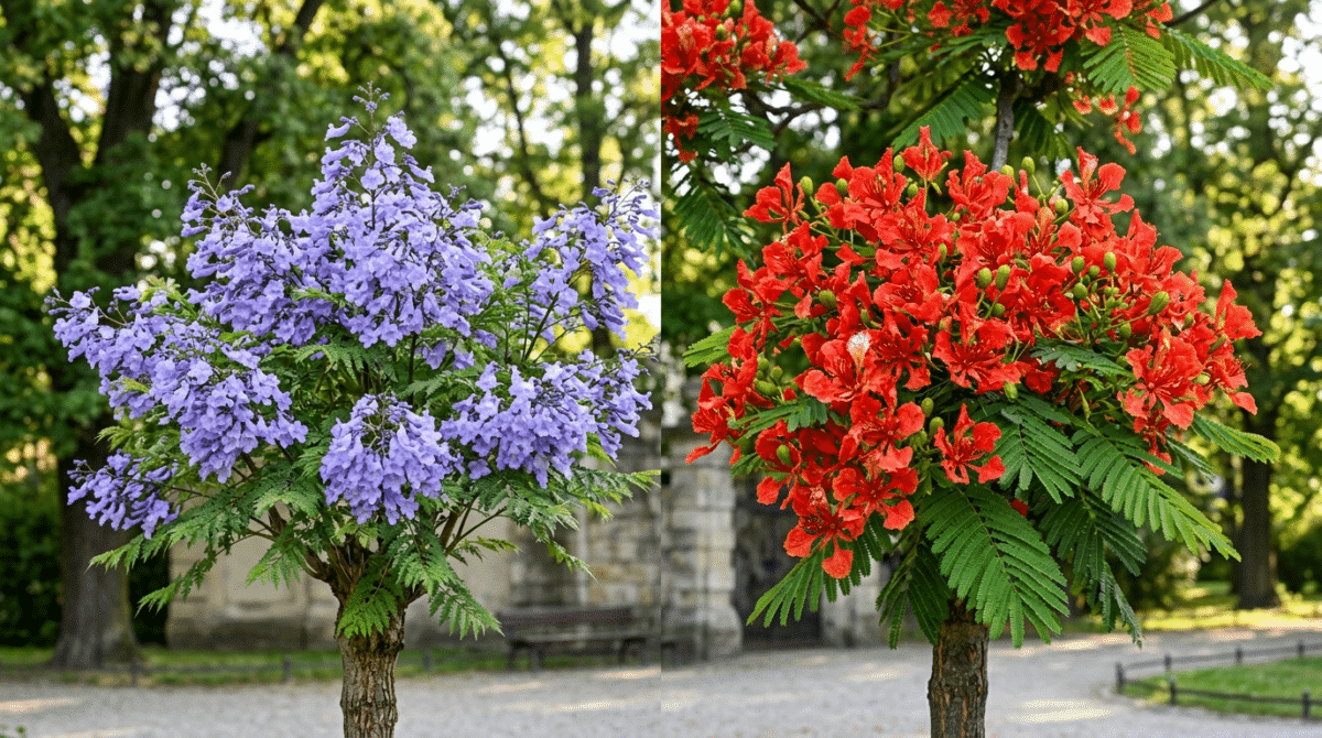 Jak odróżnić jakarandę od płomienia Afryki: botaniczne kryteria dla tych kwitnących drzew