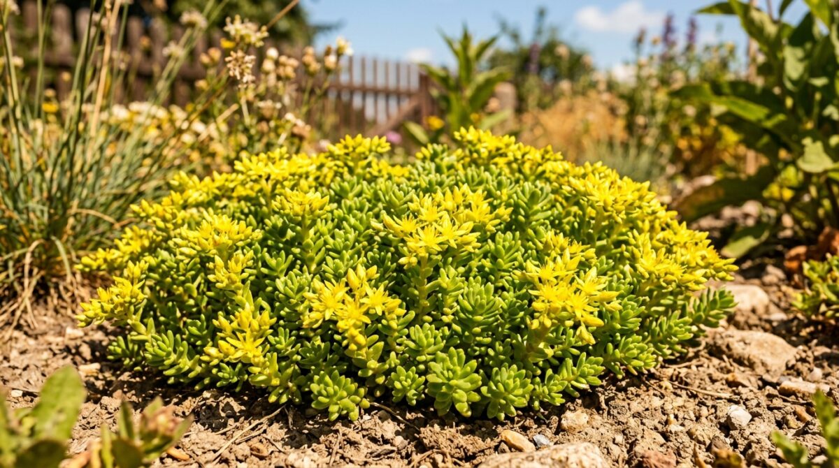 Rośliny jak rozchodniki, kocanka czy jeżówka nie tylko dodają koloru, ale też wspierają pożyteczne owady, co pomaga mikroekosystemowi ogrodu.